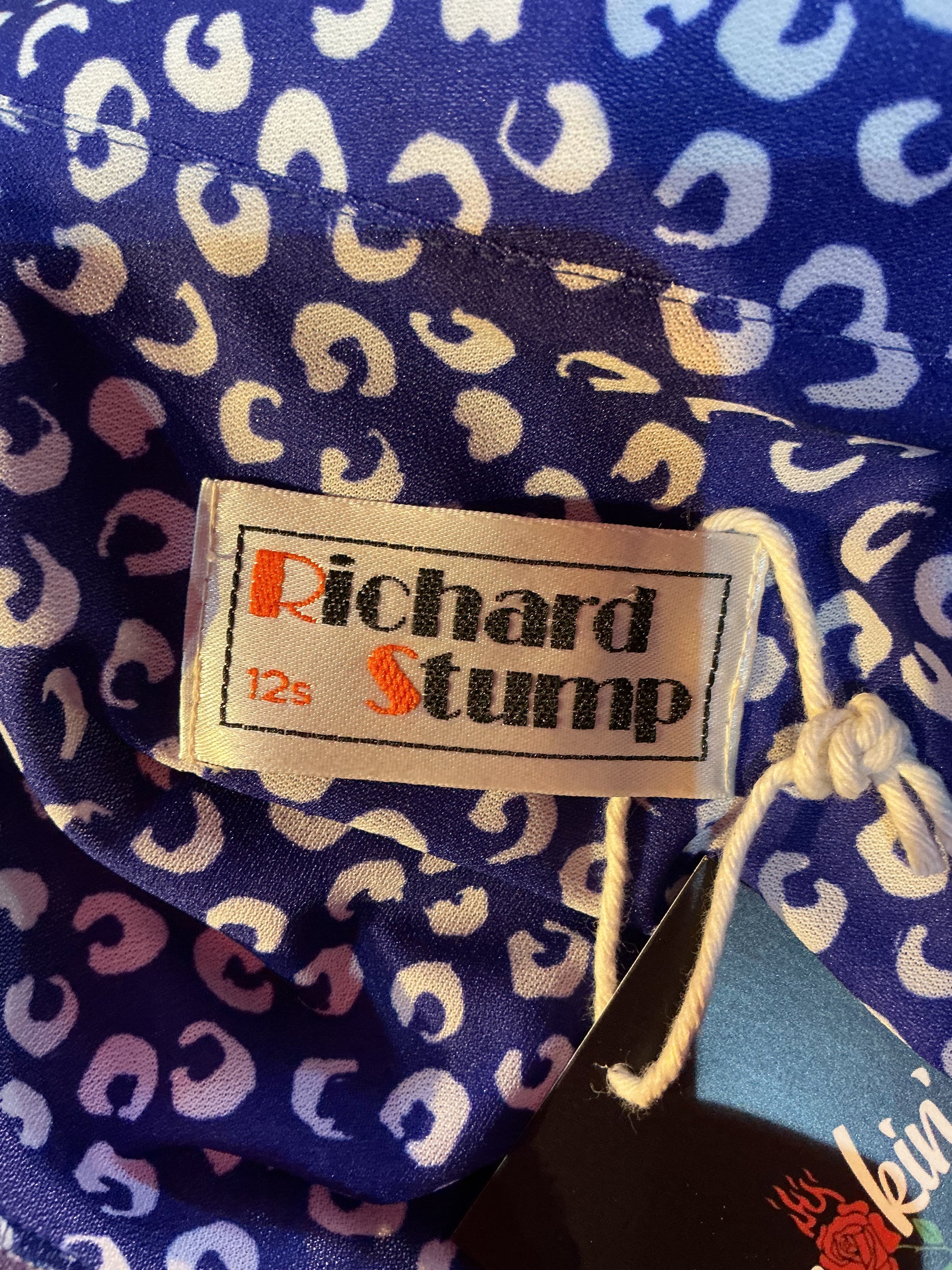 The 1980s Vintage Richard Stump Blue Tea Dress features a vibrant blue fabric adorned with white polka dots, complemented by an original belt. This midi-length dress is in excellent condition, making it a timeless addition to any wardrobe, ideal for both casual and semi-formal occasions.