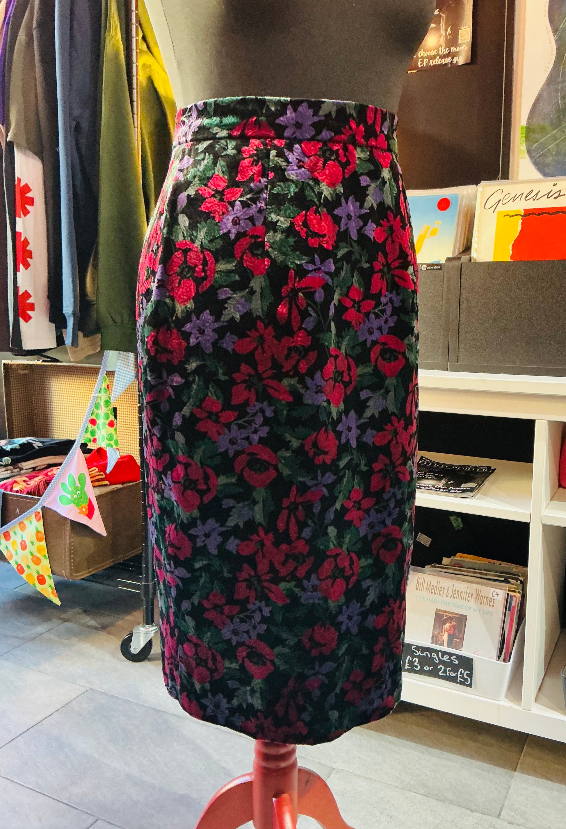 1990s Vintage Velvet Floral Pencil Skirt