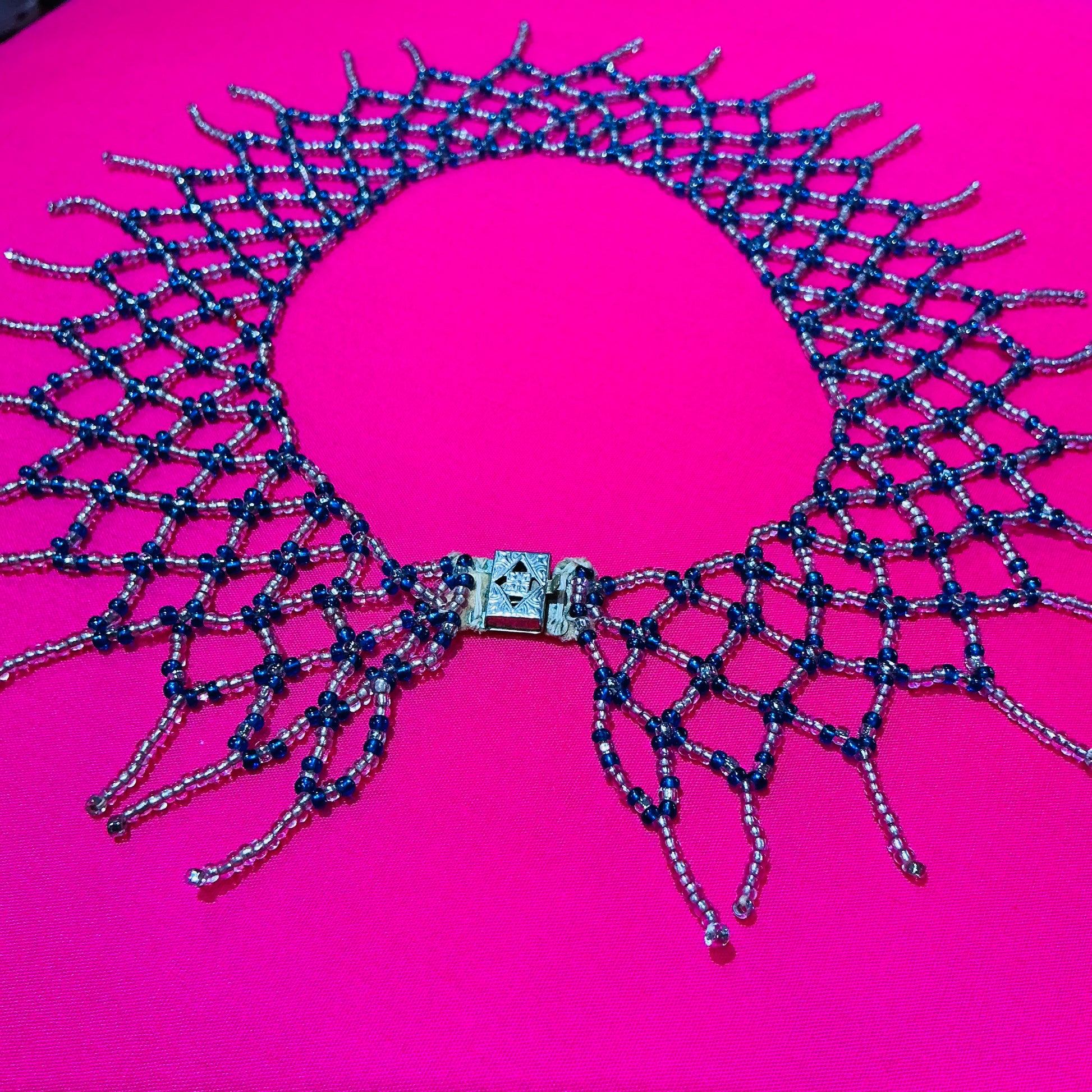 Blue and Clear Beaded Collar Necklace