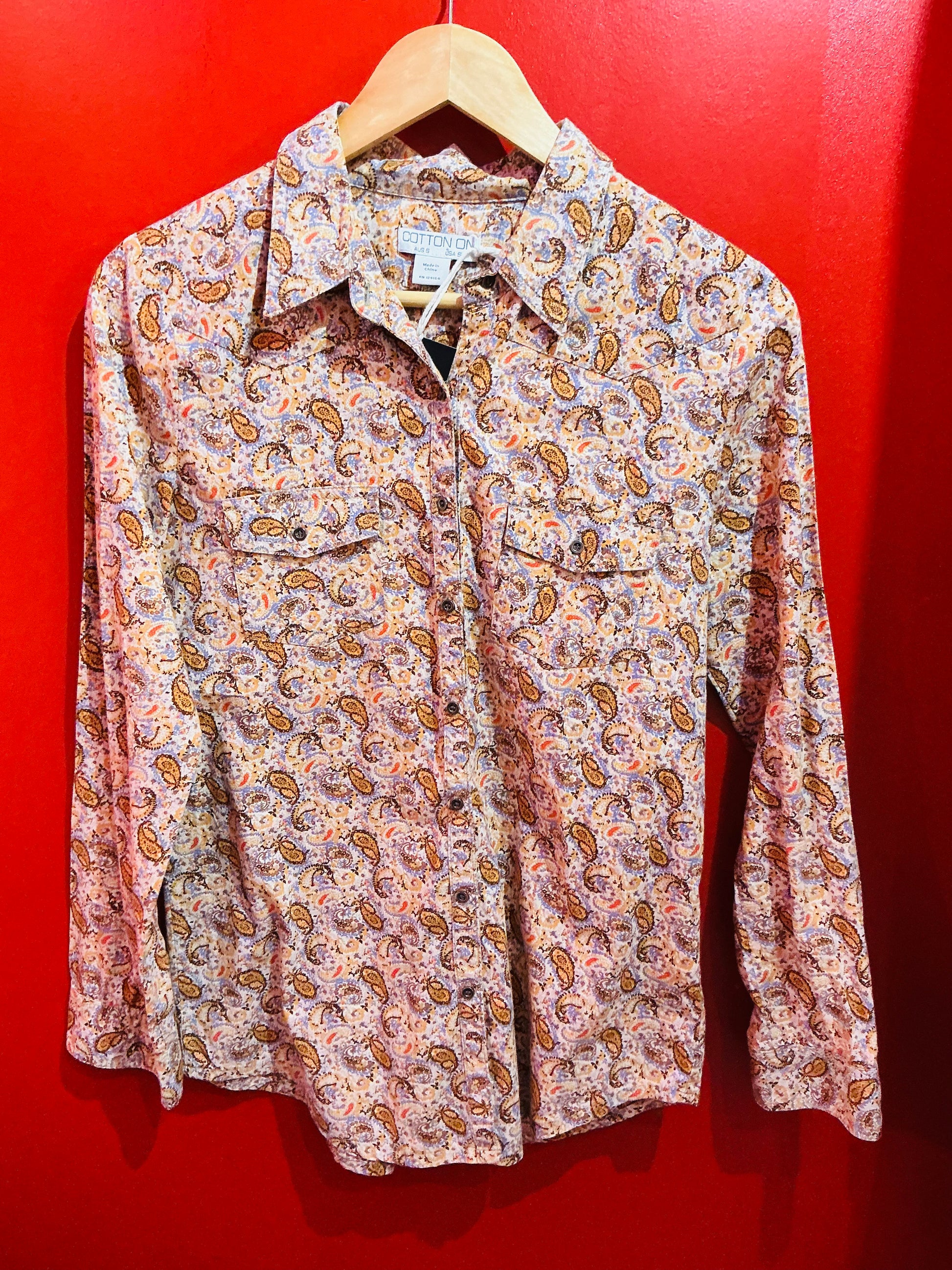 This Orange Paisley 90s Vintage Shirt offers high-quality vintage style. With its bold orange paisley print and 90s-inspired design, this shirt is perfect for adding a touch of nostalgia to any outfit. Made with premium materials for lasting comfort and style.