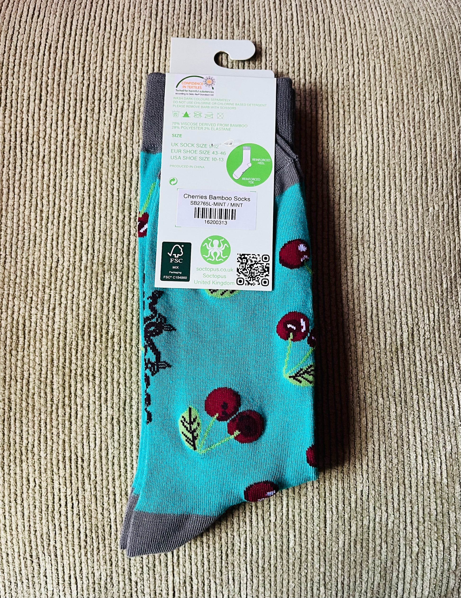 Expertly crafted from bamboo fibers, Socktopus Cherry Bamboo Socks offer a luxuriously soft feel. Boasting an irresistible cherry design in teal blue and red, these socks are both stylish and durable. Upgrade your wardrobe with these eco-friendly and comfortable socks today.